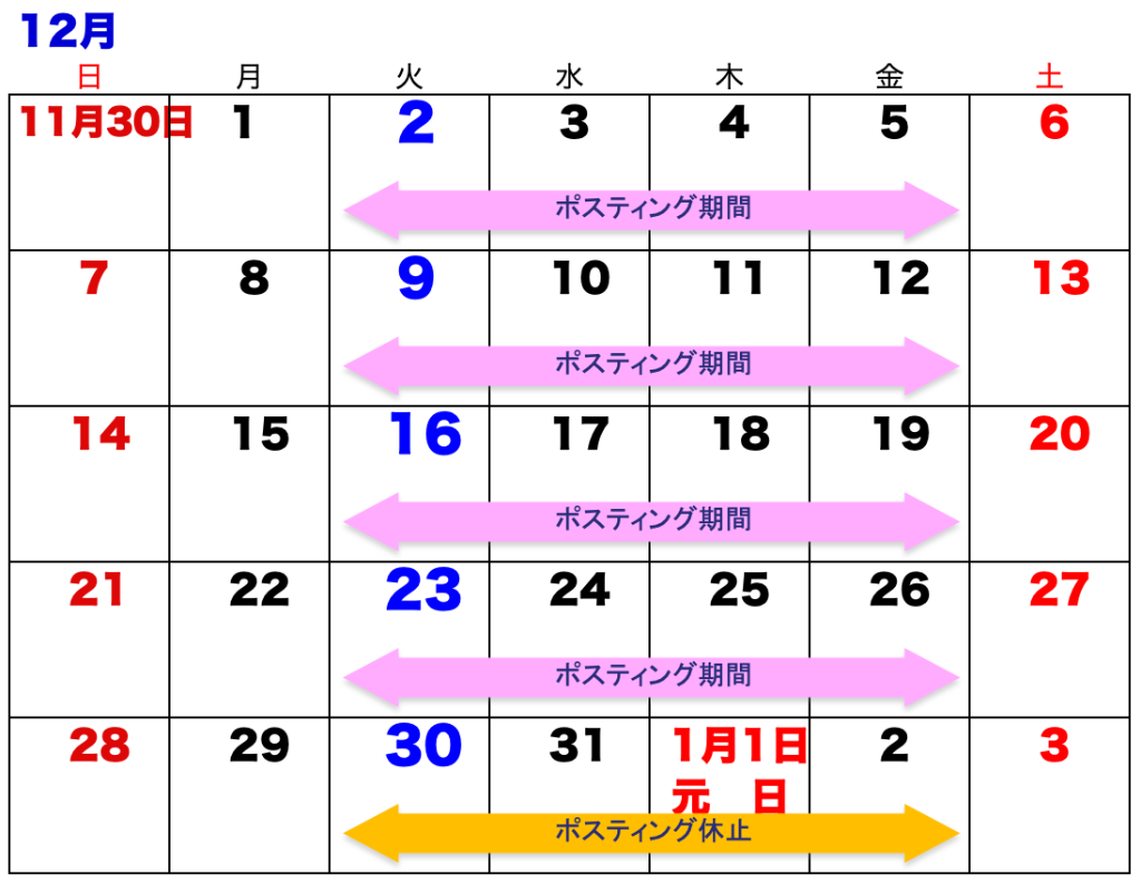 12月の配布予定表をUPしました。