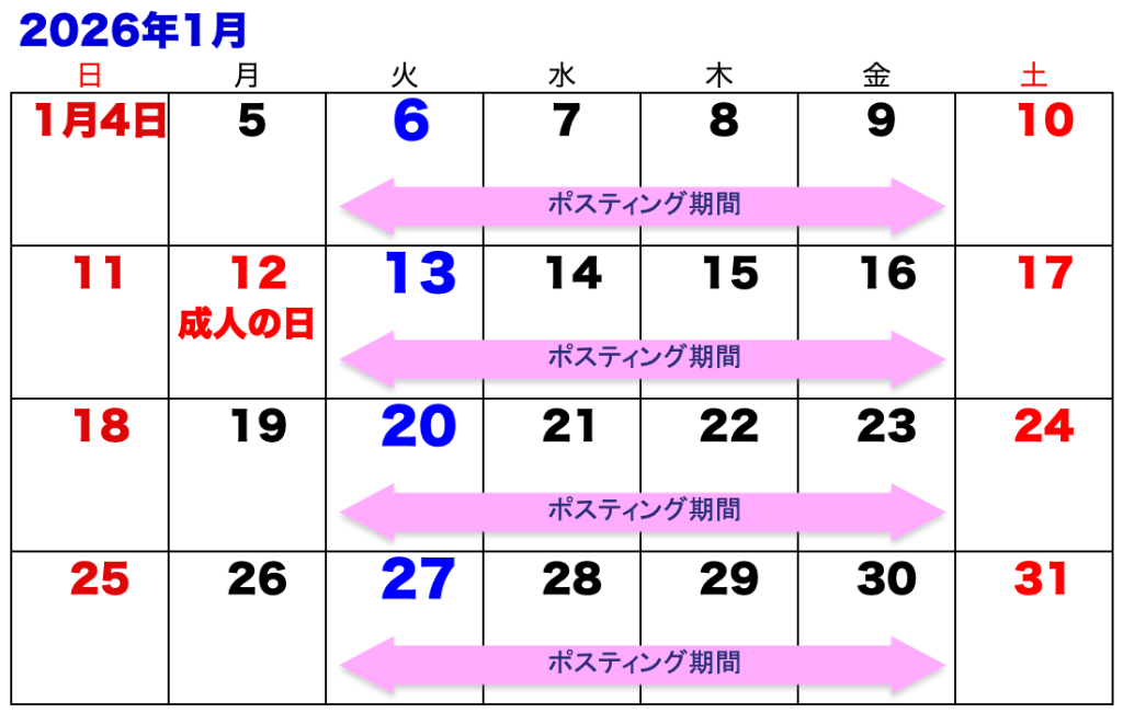 26年1月の配布予定表をUPしました。